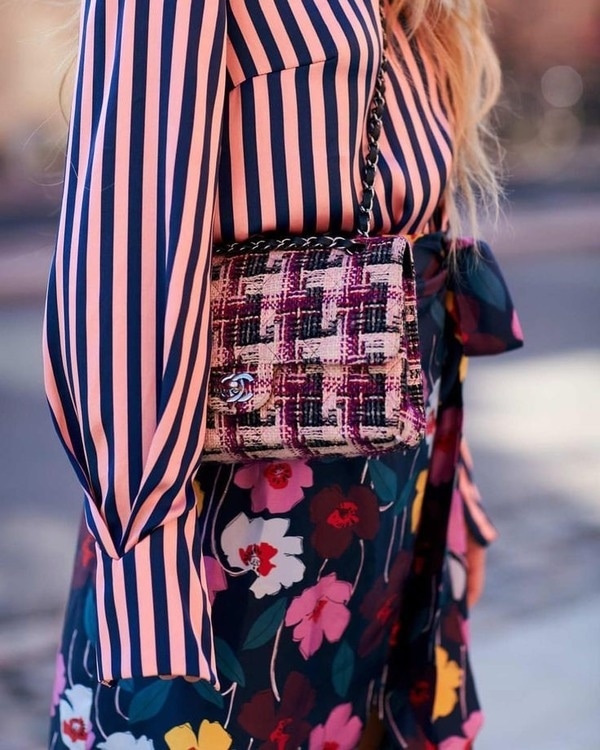 Полоски легко сочетаются с контрастным принтом. Попробуйте выбрать один принт, который будет доминировать, и другой, как акцент.